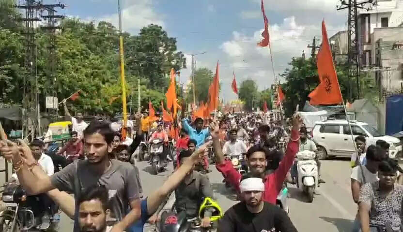 विहिप और बजरंग दल की शौर्य जागरण यात्रा का अलवर पहुंचने पर हुआ स्वागत, कंपनी बाग में हुई सभा