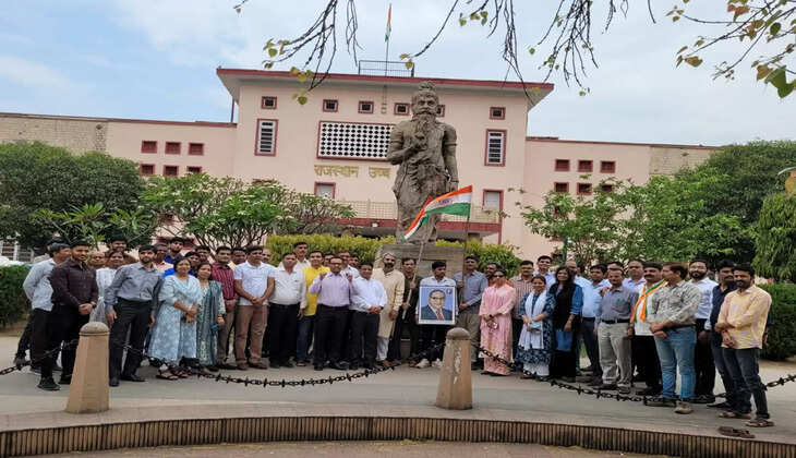 जयपुर, 14 अप्रैल (हि.स.)। भारत रत्न डाॅ. भीमराव रामजी अंबेडकर की 133 वीं जयंती पर रविवार को राजस्थान उच्च न्यायालय परिसर स्थित मनु की प्रतिमा से उच्च न्यायालय सर्किल स्थित अंबेडकर की प्रतिमा तक अधिवक्ताओं ने पदयात्रा निकाली।