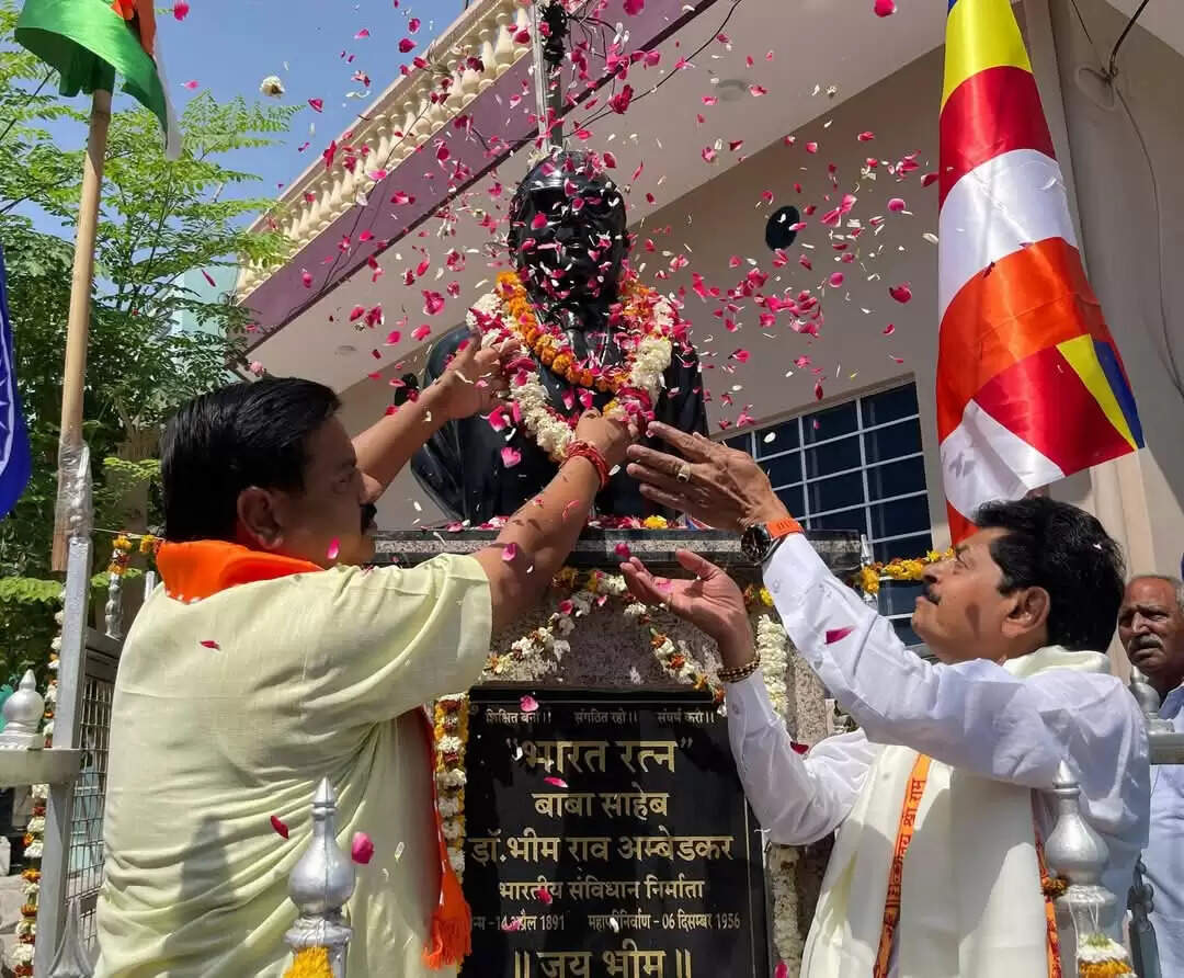 जयपुर, 14 अप्रैल (हि.स.)। सामाजिक न्याय के प्रणेता, भारतीय संविधान के शिल्पकार, भारत रत्न बाबासाहेब डॉ. भीमराव अंबेडकर की जयंती सोमवार को मनाई गई। इस मौके पर पुष्पाजंलि, रैली, विचार गोष्ठी सहित अनेक कार्यक्रम हुए। मुख्य कार्यक्रम अंबेडकर सर्किल पर हुआ। यहां विभिन्न संस्थाओं के लोगों ने उनकी प्रतिमा पर पुष्पांजलि अर्पित कर कृतज्ञतापूर्वक नमन किया। मुख्यमंत्री भजनलाल शर्मा, उपमुख्यमंत्री डॉ. प्रेमचंद बैरवा, मालवीय नगर विधायक कालीचरण सर्राफ, सिविल लाइंस विधायक गोपाल शर्मा, जयपुर शहर भाजपा जिला अध्यक्ष अमित गोयल, जयपुर ग्रेटर नगर निगम की महापौर डॉ. सौम्या गुर्जर सहित अनेक गणमान्य लोग पुष्पाजंलि अर्पित करने पहुंचे।सिविल लाइंस विधानसभा के वार्ड 46, अशोकपुरा में बाबासाहेब डॉ. भीमराव अंबेडकर को पुष्पांजलि अर्पित करने के बाद विधायक गोपाल शर्मा ने कहा कि न्यायपूर्ण और समतामूलक समाज निर्माण की दिशा में बाबासाहेब के विचार आज भी हम सभी को प्रेरणा प्रदान करते हैं। कांग्रेस ने हमेशा बाबा साहब के विचारों और कार्यों को दबाने का षड्यंत्र रचा। जब डॉ अम्बेडकर लोकसभा का चुनाव लड़ रहे थे, तब कांग्रेस ने उन्हें हराने के लिए पूरी ताकत लगा दी। उस समय राष्ट्रीय स्वयंसेवक संघ के स्वयंसेवकों ने उनके चुनाव अभियान को मजबूती दी। आज का दिन सिर्फ श्रद्धांजलि का नहीं, बल्कि सच्चाई को सामने लाने का भी है। बाबासाहेब का सम्मान करने का असली मतलब है उनके विचारों और कार्यों को सही दिशा देना, जो कांग्रेस कभी नहीं कर पाई।