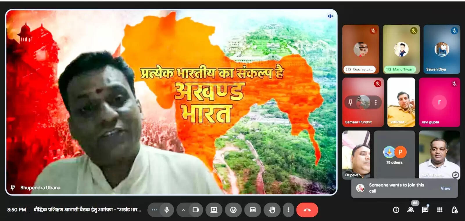 कार्यक्रम का संचालन चित्तौड़ प्रांत के संरक्षक डॉ. विक्रम मेनारिया ने किया। इस ऑनलाइन आयोजन में राजस्थान के तीनों प्रांतों के पूर्व छात्र संयोजक, सह-संयोजक तथा विद्या मंदिरों की सक्रिय पूर्व छात्र परिषदों के 100 से अधिक पदाधिकारी सम्मिलित हुए। सभी ने पूरे उत्साह के साथ अखंड भारत पखवाड़ा को सफल बनाने का संकल्प लिया।