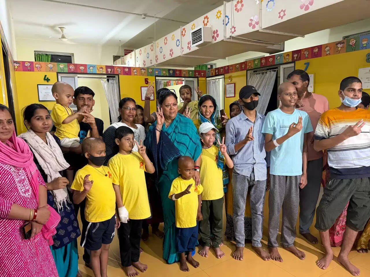 उन्होंने कहा कि बहुत लोगों को इस मिशन से जुड़ना चाहिए। राजे को यकायक अपने बीच पाकर कैंसर पीड़ित बच्चों के बुझे चेहरे पर मुस्कान आ गई। पूर्व सीएम यहाँ हर वार्ड में गई और भर्ती प्रदेशभर के 48 बच्चों और उनके परिजनों से मिली।उन्होंने कहा कि यह अच्छी पहल है कि कैंसर पीड़ित बच्चों के साथ उनके माता-पिता भी यहाँ रहकर उनका इलाज करवा रहें हैं। उन्होंने कैंसर पीड़ित बच्चों के बनाये हुई पेंटिंग्स भी देखी।यहां सिर्फ बच्चों का ही इलाज होता है।