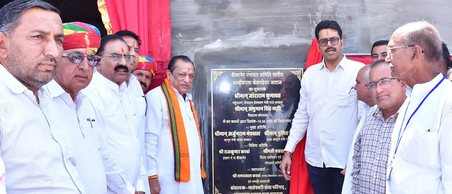 बीकानेर, 16 अप्रैल (हि.स.)। केशरदेसर जाटान में पंचायत समिति स्तरीय नंदी गौशाला का शुभारंभ बुधवार को पशुपालन, गोपालन, डेयरी एवं देवस्थान विभाग मंत्री जोराराम कुमावत और कोलायत विधायक अंशुमान सिंह भाटी ने किया।