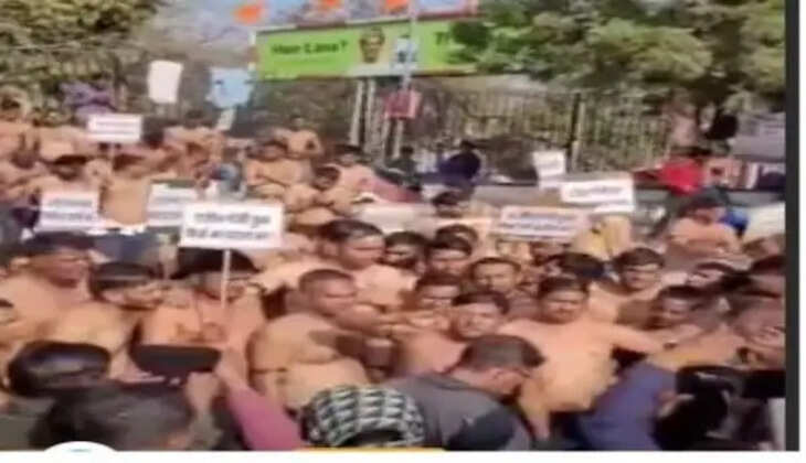 राजीव गांधी युवा मित्रों ने अर्धनग्न होकर किया विरोध प्रदर्शन