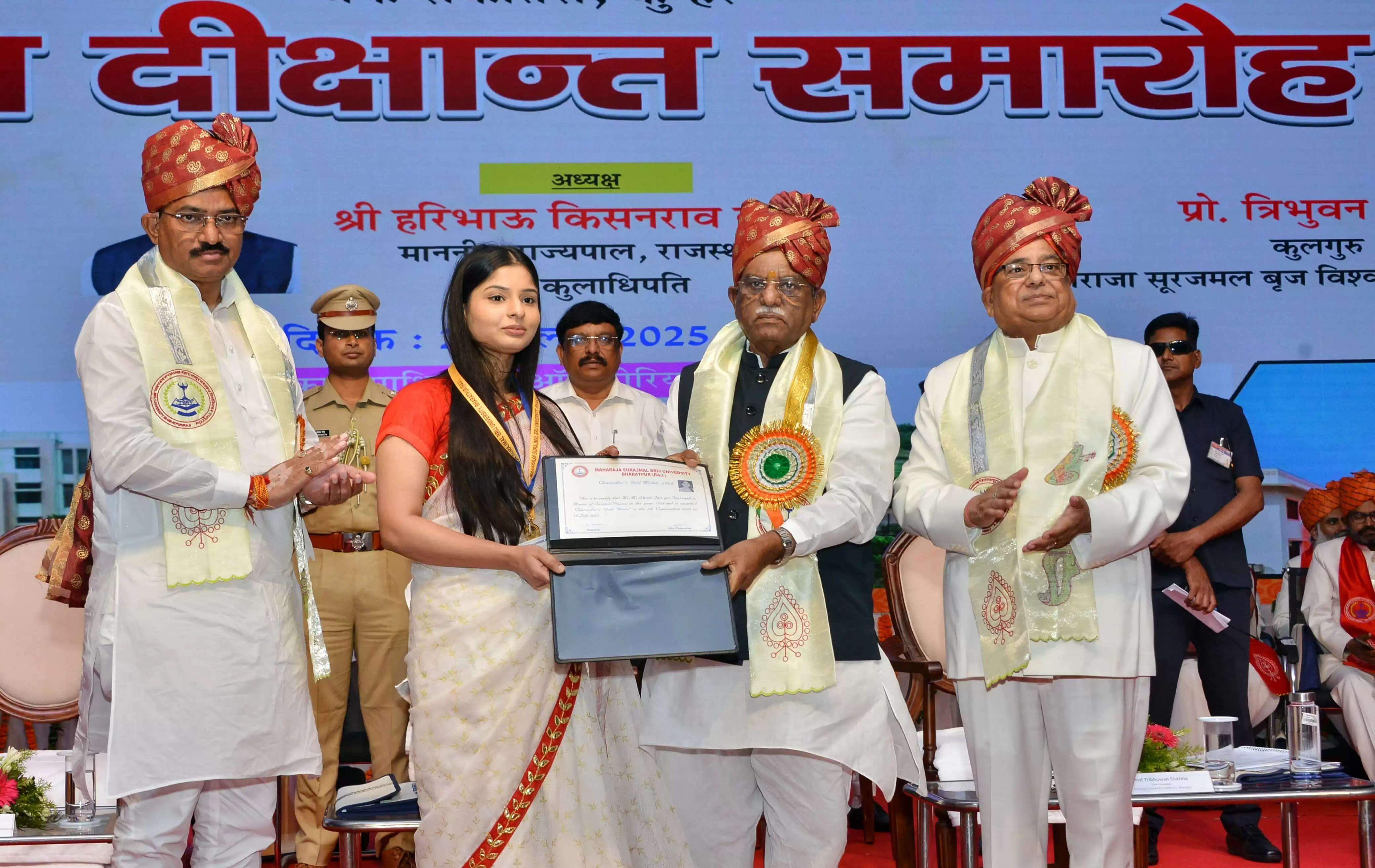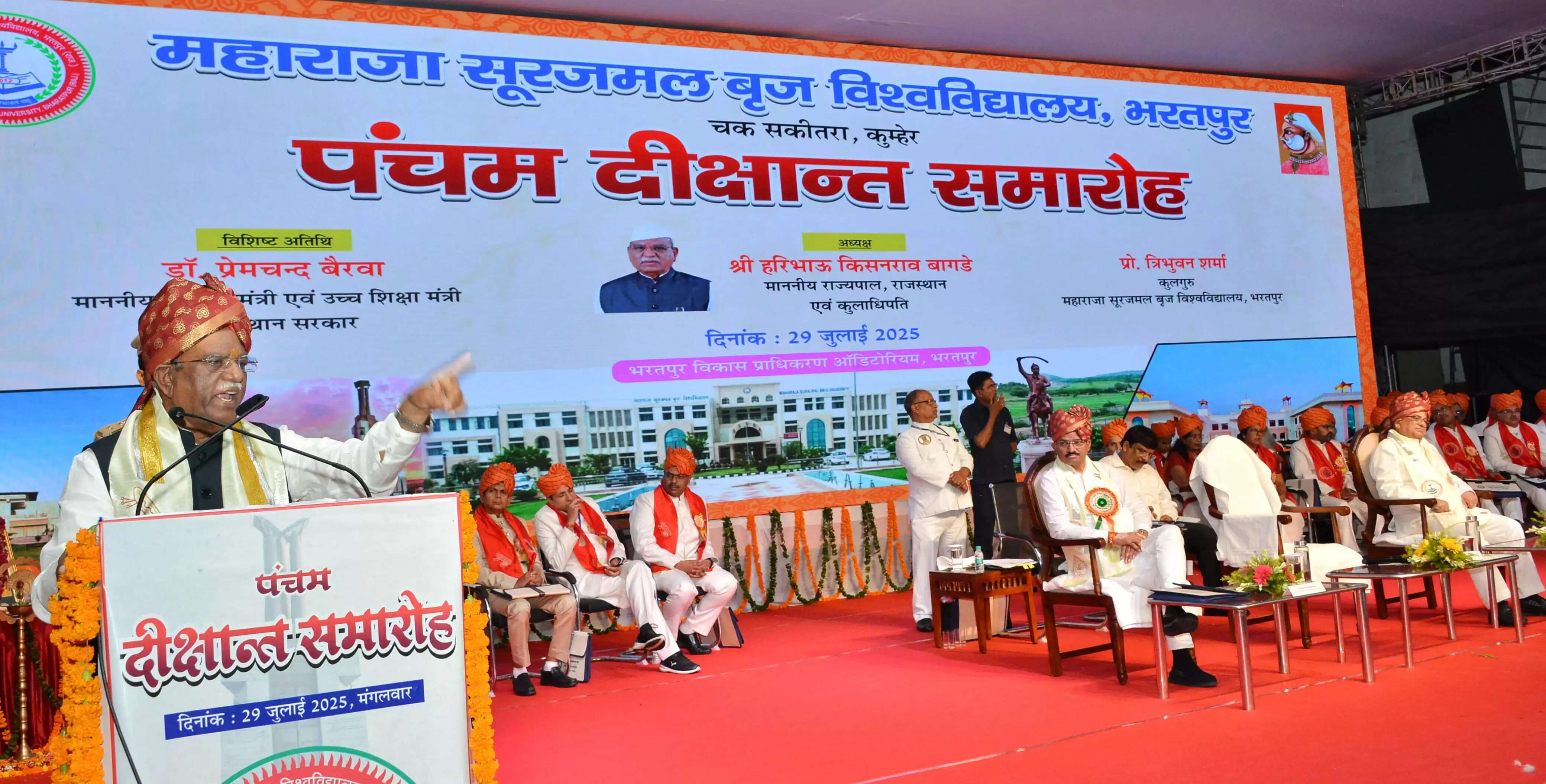 राज्यपाल बागडे मंगलवार को बीडीए ऑडिटोरियम में महाराजा सूरजमल बृज विश्वविद्यालय के पंचम दीक्षान्त समारोह में सम्बोधित कर रहे थे।