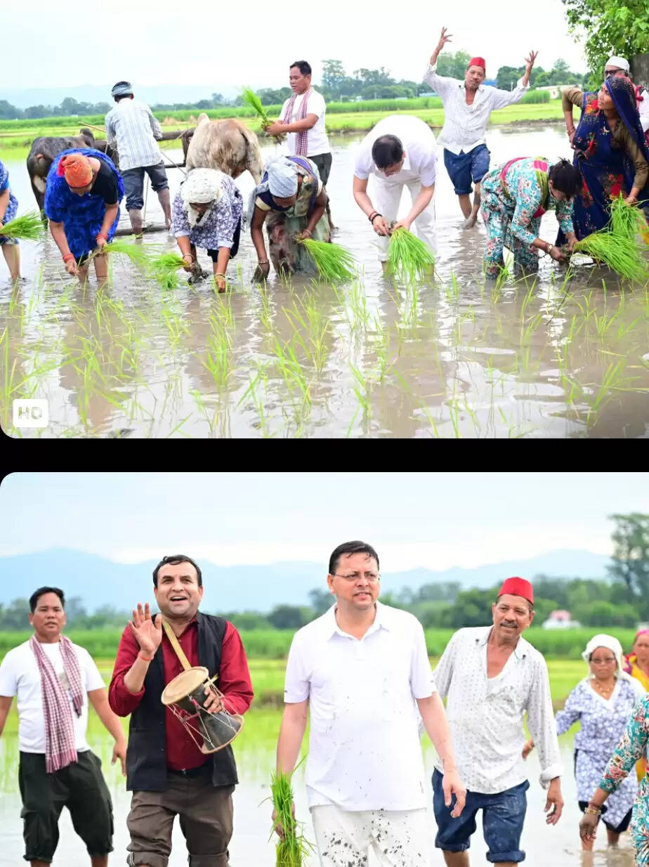मुख्यमंत्री धामी ने की धान रोपाई, किसानों के श्रम को किया नमन