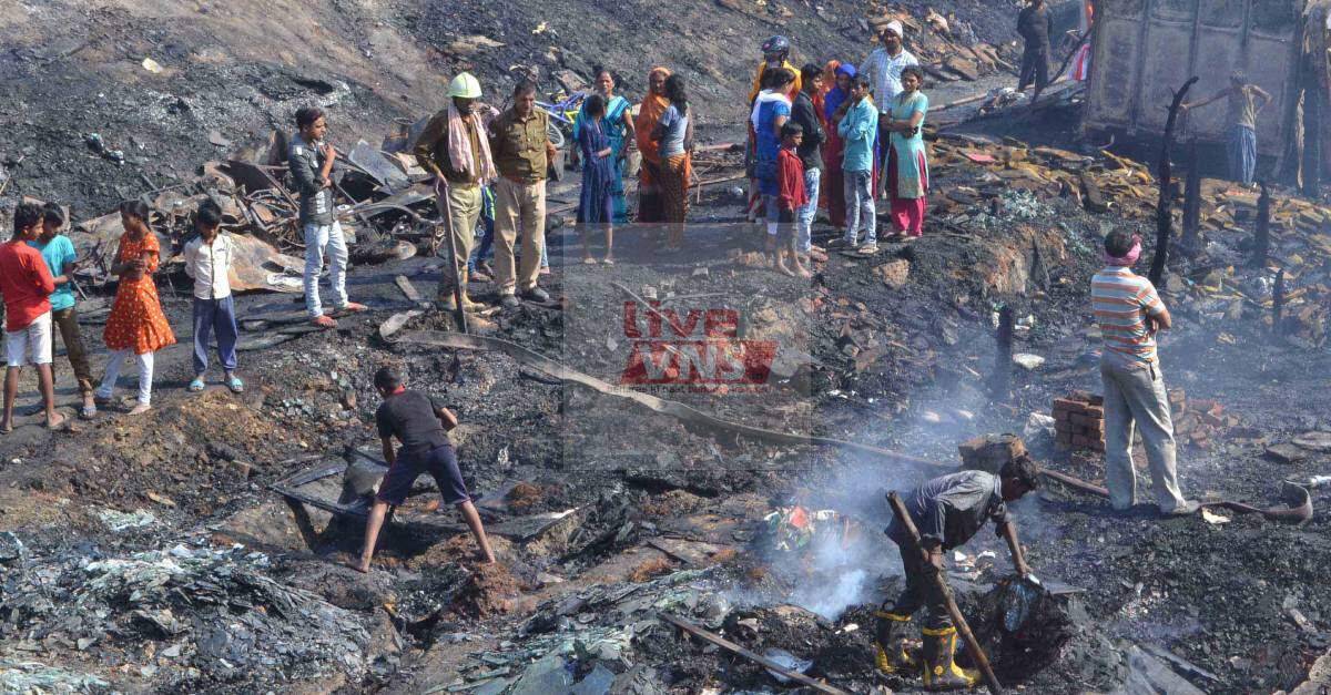 वाराणसी में झुग्गी-झोपड़ी में लगी आग, शहरी सामुदायिक स्वास्थ्य केंद्र की वैक्सीन एम्बुलेंस तक पहुंची लपटें