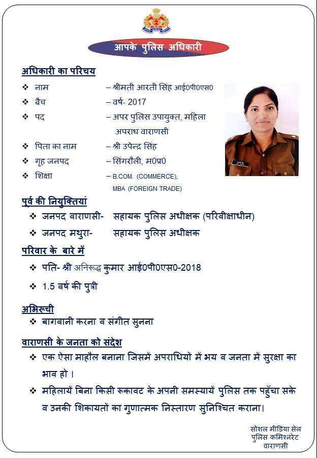 वाराणसी की पहली महिला एडिशनल डिप्टी कमिश्नर ऑफ पुलिस बनीं IPS आरती सिंह