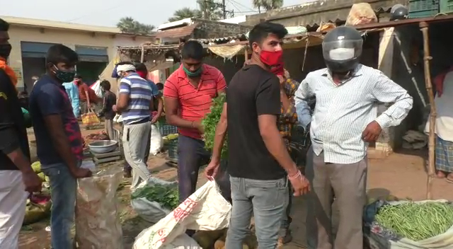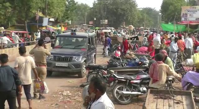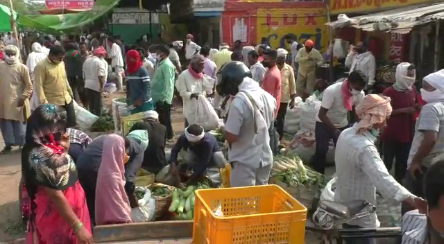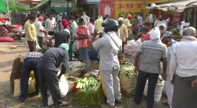 पंचकोशी सब्ज़ी मंडी में उड़ी सोशल डिस्टेंसिंग की धज्जियां, व्यापारियों में नहीं दिखा कोरोना का खौफ