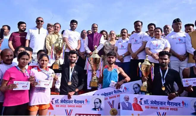 लखनऊ,13 अप्रैल (हि.स.)। भारतीय जनता पार्टी लखनऊ महानगर की ओर से रविवार को यहां डा. आम्बेडकर मैराथन का आयोजन किया गया। के.डी.सिंह बाबू स्टेडियम से मशाल जलाकर आम्बेडकर मैराथन का शुभारंभ भाजपा के प्रदेश महामंत्री संगठन धर्मपाल ने किया। उप मुख्यमंत्री ब्रजेश पाठक ने झण्डी दिखाकर धावकों को रवाना किया।