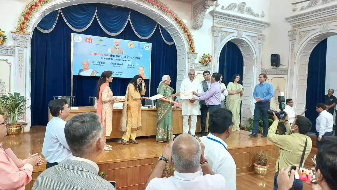 औरैया, 18 सितम्बर (हि.स.)। जनपद के जिला क्षय रोग अधिकारी डॉ संत कुमार सहित निक्षय मित्र गेल इंडिया लिमिटेड के डॉ रामा श्रीनिवासन, वेलमुरुगन, शशांक सक्सेना व नवीन कुमार को प्रदेश की राज्यपाल आनंदीबेन पटेल ने रविवार को लखनऊ में आयोजित एक समारोह में सम्मानित किया। समारोह में राज्यपाल ने टीबी मुक्त भारत अभियान के तहत निक्षय मित्र बनकर रोगियों की मदद में महत्वपूर्ण योगदान देने वाले पूरे प्रदेश से चयनित कुल 10 निक्षय मित्रों सहित 10 जिला क्षय रोग अधिकारियों को सम्मानित किया। सभी को स्मृति चिह्न एवं प्रमाण पत्र देकर सम्मान से नवाजा गया।