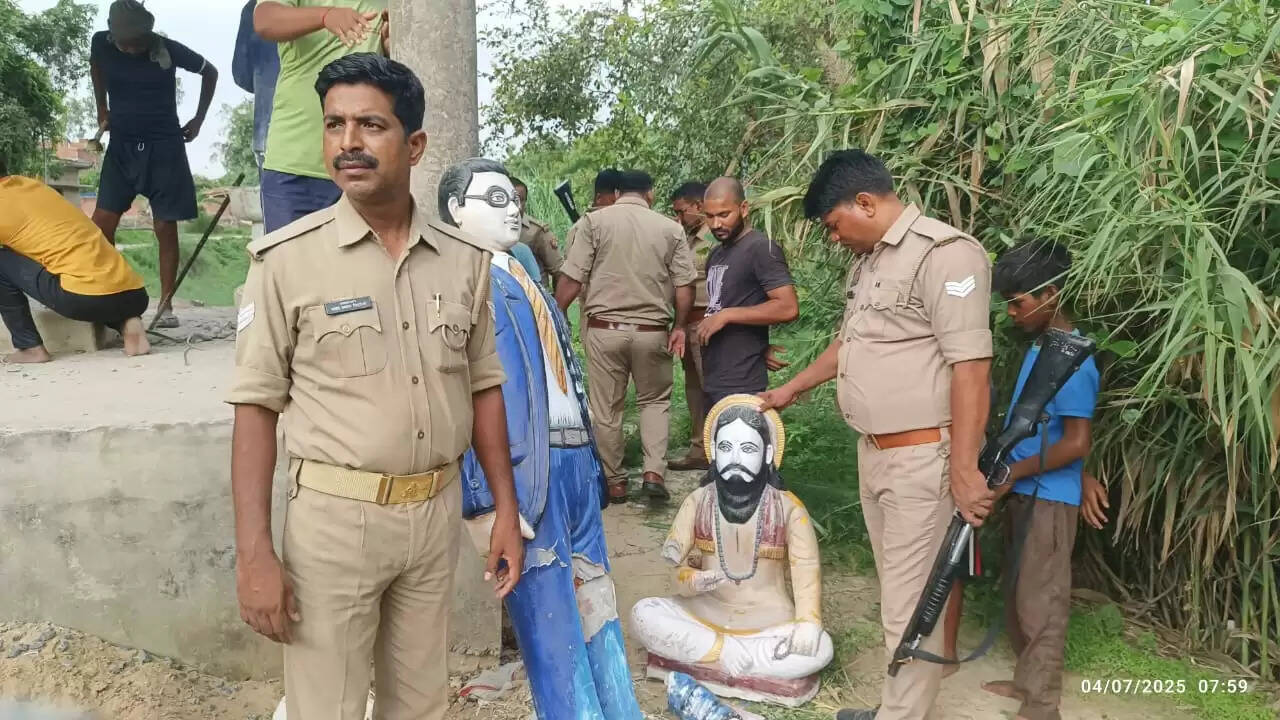 सूचना मिलते ही अहरौला थाना प्रभारी प्रदीप मिश्रा फोर्स के साथ पहुंचे सीओ बूढ़नपुर अजय प्रताप सिंह भी मौके पर पहुंच गए। लोग इस घटना के दो​षियों के ​खिलाफ कार्रवाई की मांग पर अड़े हुए थे। पुलिस लाेगों को समझा बुझाकर मामले को शांत कराने में जुट गई। साथ ही प्रतिमा की मरम्मत के लिए कारीगर को भी मौके पर बुलाया। खादारामपुर में नई मूर्ति मंगाकर लगवाई गई। वहीं पूरबपट्टी गांव में लोग इस बात पर अड़े थे कि जब तक प्रतिमा की सुरक्षा के उपाय नहीं किए जाते तब तक प्रतिमा नहीं लगेगी। वही अधिकारी आक्रोशित ग्रामीणों को समझाने-बुझाने में जुटे है।