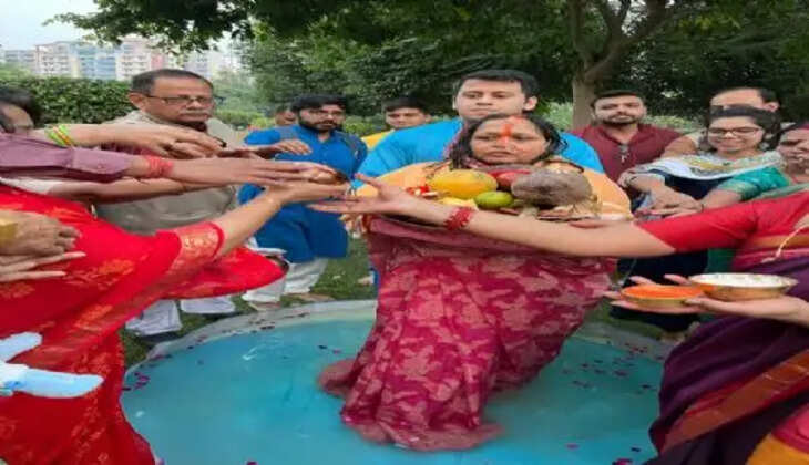नोएडा में छठ की धूम, पूर्व सैनिकों के परिजनों ने भी मनाया छठ