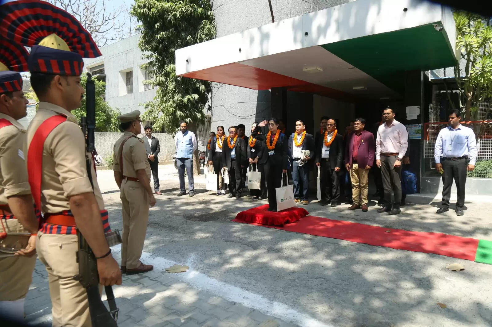 इससे पहले विकास भवन में पहुंचने पर गार्ड ऑफ ऑनर देकर सिविल सेवकों को सम्मान दिया गया। जिलाधिकारी दीपक मीणा के निर्देशन पर मुख्य विकास अधिकारी अभिनव गोपाल के नेतृत्व में प्रशासनिक अधिकारियों द्वारा कंबोडिया के सभी 40 सिविल सेवकों का स्वागत किया गया।