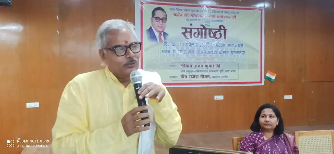 भारतरत्न डॉ भीम राव अंबेडकर की जयंती की पूर्व संध्या पर के. एन. आई. कैम्पस के सी.एस.ए. हाल में आयोजित संगोष्टी को बतौर मुख्य वक्ता संबोधित करते हुए अभय ने कहा कि डॉ अंबेडकर को लगता था कि तमिल उत्तर भारत में स्वीकार्य न हो। उसी तरह हिंदी दक्षिण भारत में स्वीकार्य न हो, लेकिन संस्कृत को लेकर उत्तर और दक्षिण में विरोध की कोई आशंका नहीं थी। शायद यही वजह है कि अंबेडकर ने संस्कृत को भारत की राजभाषा बनाने का प्रस्ताव दिया था। देश को स्वाधीनता मिले दो साल बीत चुके थे। आजाद भारत को नया विधान देने के लिए संविधान सभा लगातार कार्य कर रही थी। भारत की राजभाषा क्या हो, इसे लेकर प्रस्ताव आने वाला था। संविधान सभा में भाषा का सवाल उठने के ठीक एक दिन पहले 11 सितंबर 1949 को 'नेशनल हेराल्ड' अखबार में एक खबर छपी, 'संस्कृत के साथ अंबेडकर।' उन दिनों इस समाचार ने देश को चौंका दिया था। अंग्रेजी पढ़े-लिखे और ब्रिटिश वायसराय की कौंसिल यानी मंत्रिमंडल के सदस्य रह चुके डॉक्टर भीमराव अंबेडकर को लेकर कोई यह कल्पना भी नहीं कर सकता था कि वे संस्कृत का समर्थन करेंगे। लेकिन नेशनल हेराल्ड में छपी इस खबर ने डॉ. अंबेडकर को लेकर जारी धारणा को खंडित कर दिया था। उस समाचार के अनुसार संविधान की प्रारूप समिति के अध्यक्ष और देश के तत्कालीन विधि मंत्री डॉ. भीमराव अंबेडकर उस धारा के साथ थे, जो संस्कृत को स्वाधीन भारतीय संघ की आधिकारिक भाषा बनाने की पैरोकार थी। संस्कृत को भारतीय संविधान की आधिकारिक राजभाषा बनाने वाले प्रस्ताव में अंबेडकर के साथ भारत के विदेश मामलों के उप मंत्री डॉ. बी.वी. केसकर और बंगाल से चुन कर आए संविधान सभा के सदस्य नजीरुद्दीन अहमद थे।