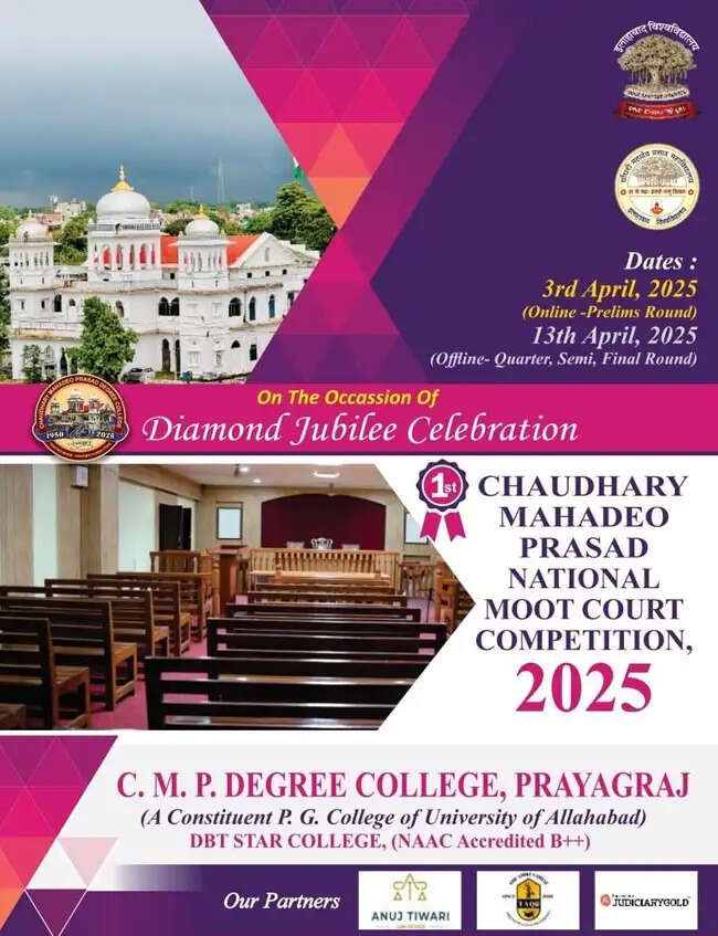 प्रयागराज, 02 अप्रैल (हि.स.)। विधि छात्रों को न्यायिक प्रक्रिया की वास्तविकता से परिचित कराने और उन्हें एक मंच प्रदान करने के उद्देश्य से सीएमपी डिग्री कॉलेज के बीएएलएलबी (ऑनर्स) ने प्रथम राष्ट्रीय मूट कोर्ट प्रतियोगिता 3 अप्रैल गुरुवार काे आयोजित की जाएगी। इस प्रतियाेगिता में देश भर के विभिन्न विधि विश्वविद्यालयों और लॉ कॉलेजों के प्रतिभाशाली छात्र-छात्राएं अपनी कानूनी क्षमता और तर्क शक्ति का प्रदर्शन करेंगे।
