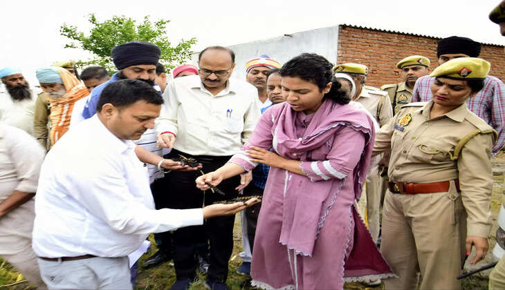 लखमीपुर खीरी में बुधवार शाम को तहसील गोला के ग्राम खजुहा, परगना कुकरा में अचानक भीषण आग से कई बीघा गेहूं की फसल जलकर राख हो गई। घटना की जानकारी मिलते ही लखीमपुर खीरी जिलाधिकारी दुर्गा शक्ति नागपाल नुकसान का जायजा लेने प्रभावित क्षेत्र में पहुंची। यहां उन्होंने नुकसान का आकलन करने के साथ अन्नदाताओं से बातचीत की। साथ ही अन्नदाताओं को जल्द से जल्द मुआवजा देने का आश्वासन दिया। जिलाधिकारी दुर्गा शक्ति नागपाल ने मौके पर ही अधिकारियों को तत्काल नुकसान का सर्वे करने के निर्देश दिये और जल्द से जल्द रिपोर्ट डीएम ऑफिस में समिट करने के निर्देश दिये। डीएम ने कुछ ही घंटों में गुरुवार को आगजनी की घटनाओं से प्रभावित किसानों को बड़ी राहत देते हुए लखीमपुर सदर, मितौली और गोला तहसील के किसानों को फसल क्षति के एवज में सरकार द्वारा अनुमन्य धनराशि के चेक प्रदान किए। इससे अन्नदाताओं मायूस चेहरे खिल उठे।