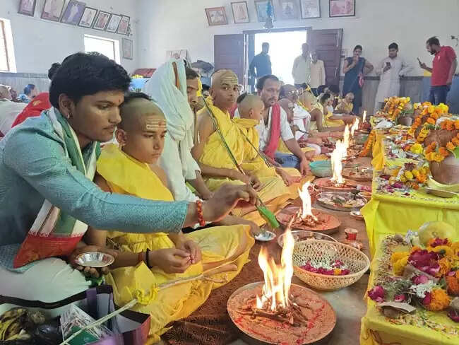 वेदारम्भ से पहले नरोत्तमानंद गिरि वेद विद्यालय में छात्रों का हुआ उपनयन संस्कार