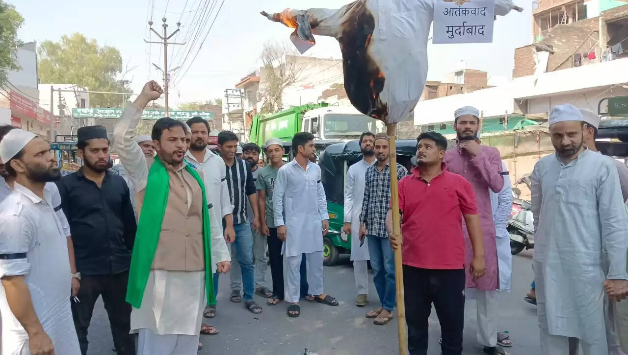 मुरादाबाद, 26 अप्रैल (हि.स.)। ऑल इंडिया मजलिस ए इत्तेहादुल मुस्लिमीन (एआईएमआईएम) ने शनिवार को जम्मू कश्मीर पहलगाम में हुए आतंकी हमले को लेकर रोष व्यक्त किया और गलशहीद चौराहे पर आतंकवाद का पुतला फूंका।