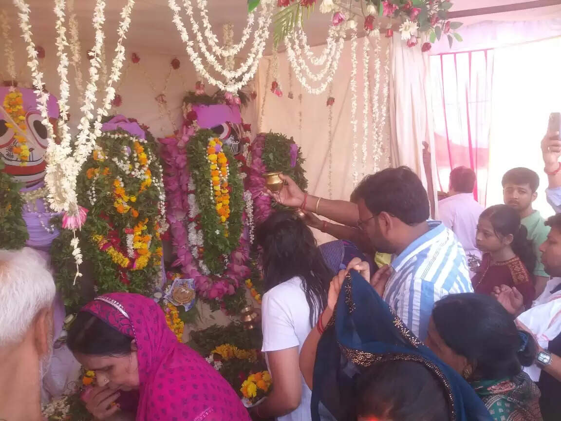 जलाभिषेक के बाद विग्रह का पूजन कर भव्य आरती की। इसक बाद कतारबद्ध श्रद्धालुओं ने पंच पल्लव मिश्रित गंगा जल के मटकों से भगवान के विग्रहों के जलाभिषेक के बाद अपने हाथों से मिष्ठान, फल-फूल अर्पित कर विधि विधान से पूजन अर्चन किया। भगवान भी भक्तों के श्रद्धारूपी प्रेम में जमकर स्नान करते रहे। यह सिलसिला रात 10 बजे तक चलेगा। इसके बाद भगवान के विग्रहों को पुन: मंदिर के गर्भगृह में लाया जाएगा। जहां अत्यधिक स्नान के कारण भगवान प्रतीक रूप से बीमार पड़ जाएंगे।