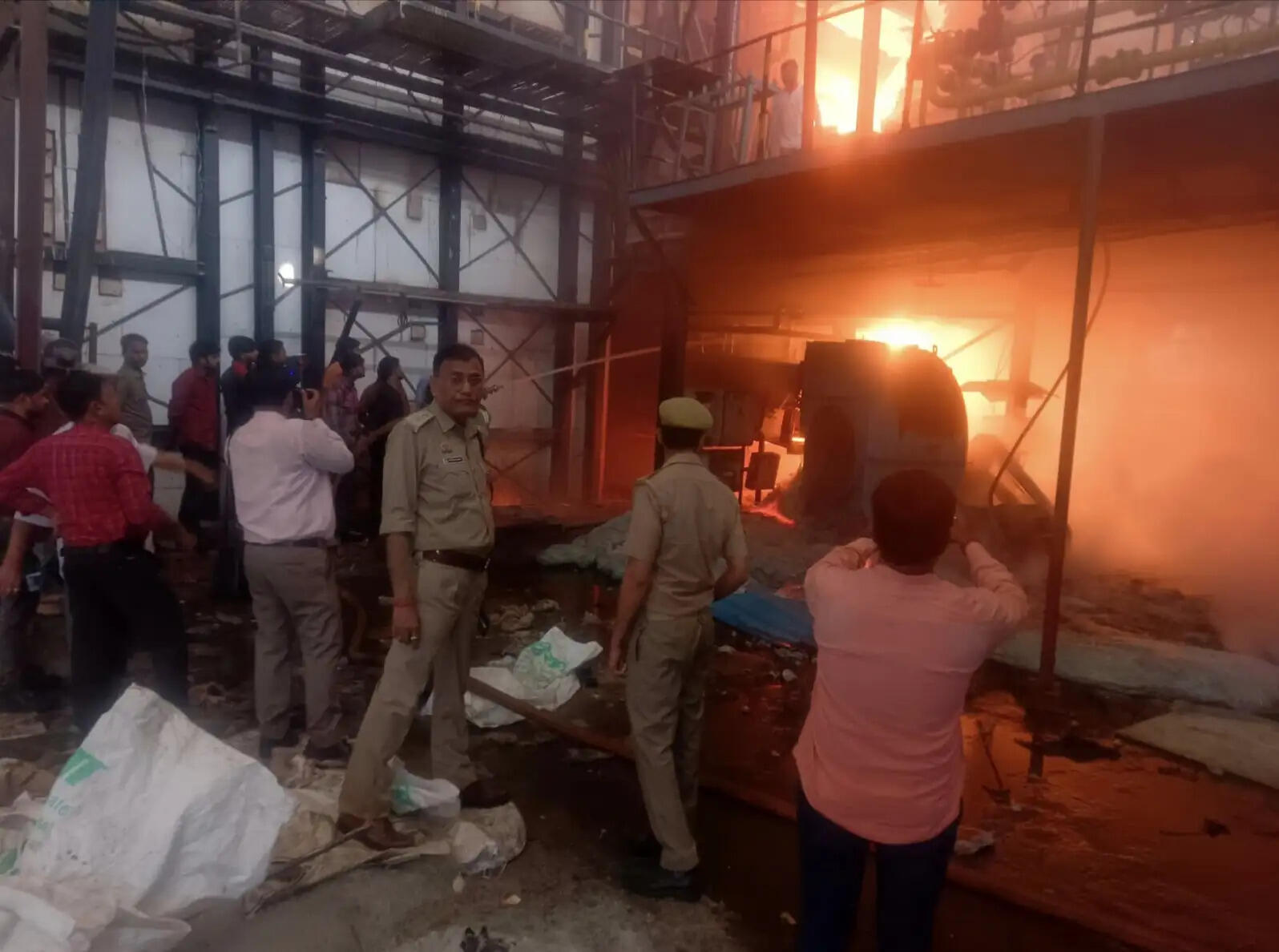 ग्लास फैक्टरी में भट्टी लीक हाेने से लगी आग