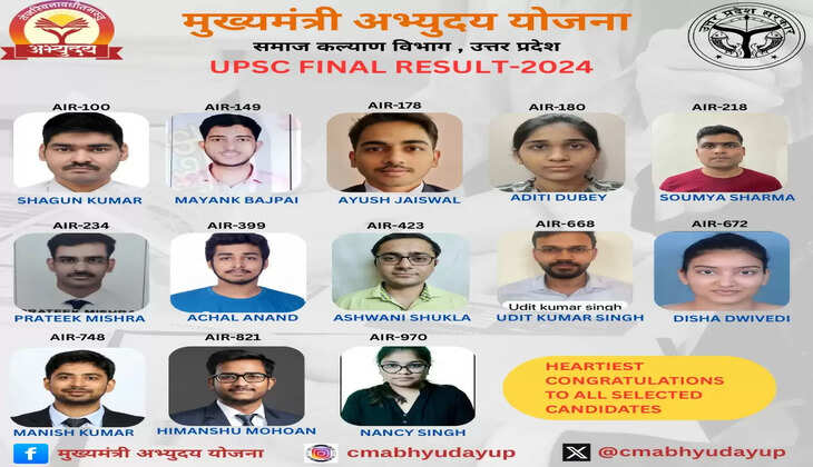 मुख्यमंत्री अभ्युदय योजना ने रचा इतिहास, यूपीएससी में 13 होनहारों ने लहराया परचम
