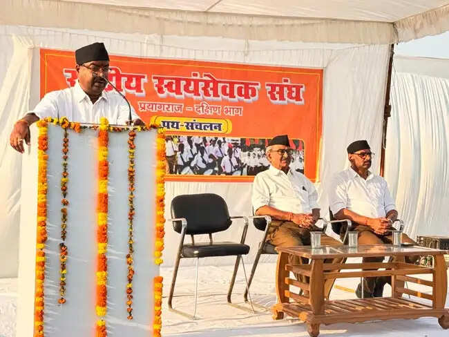 प्रयागराज, 06 अप्रैल (हि.स.)। प्रयागराज दक्षिण भाग के माधव नगर में राष्ट्रीय स्वयंसेवक संघ के स्वयंसेवकों ने रविवार को भव्य पथ संचलन किया। इस दौरान नगर के नागरिकों ने उत्साहपूर्वक विभिन्न स्थानों पर स्वयंसेवकों पर पुष्प वर्षा कर उनका स्वागत अभिनंदन किया।