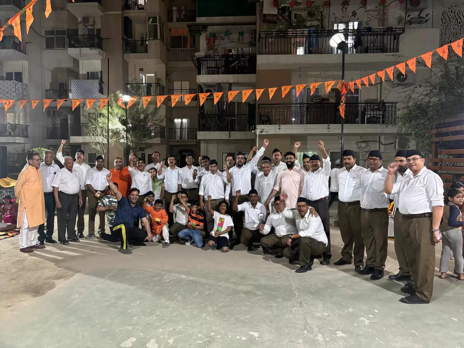 गाजियाबाद, 7 अप्रैल (हि.स.)। राष्ट्रीय स्वयंसेवक संघ की बालक राम शाखा ने राम नवमी के पावन अवसर पर अपना वार्षिक उत्सव प्रिसटीन एवेन्यू गौर सिटी 2 में मनाया। स्वयंसेवकों ने दैनिक शाखा कार्यक्रमों में सूर्यनमस्कार, शारीरिक, व्यायाम, योग, आसन इत्यादि का प्रस्तुतीकरण किया। यह वार्षिक उत्सव राष्ट्रीय स्वयंसेवक संघ के मूल्यों और आदर्शों को बढ़ावा देने और समाज में सकारात्मक परिवर्तन लाने के लिए एक महत्वपूर्ण कदम है।