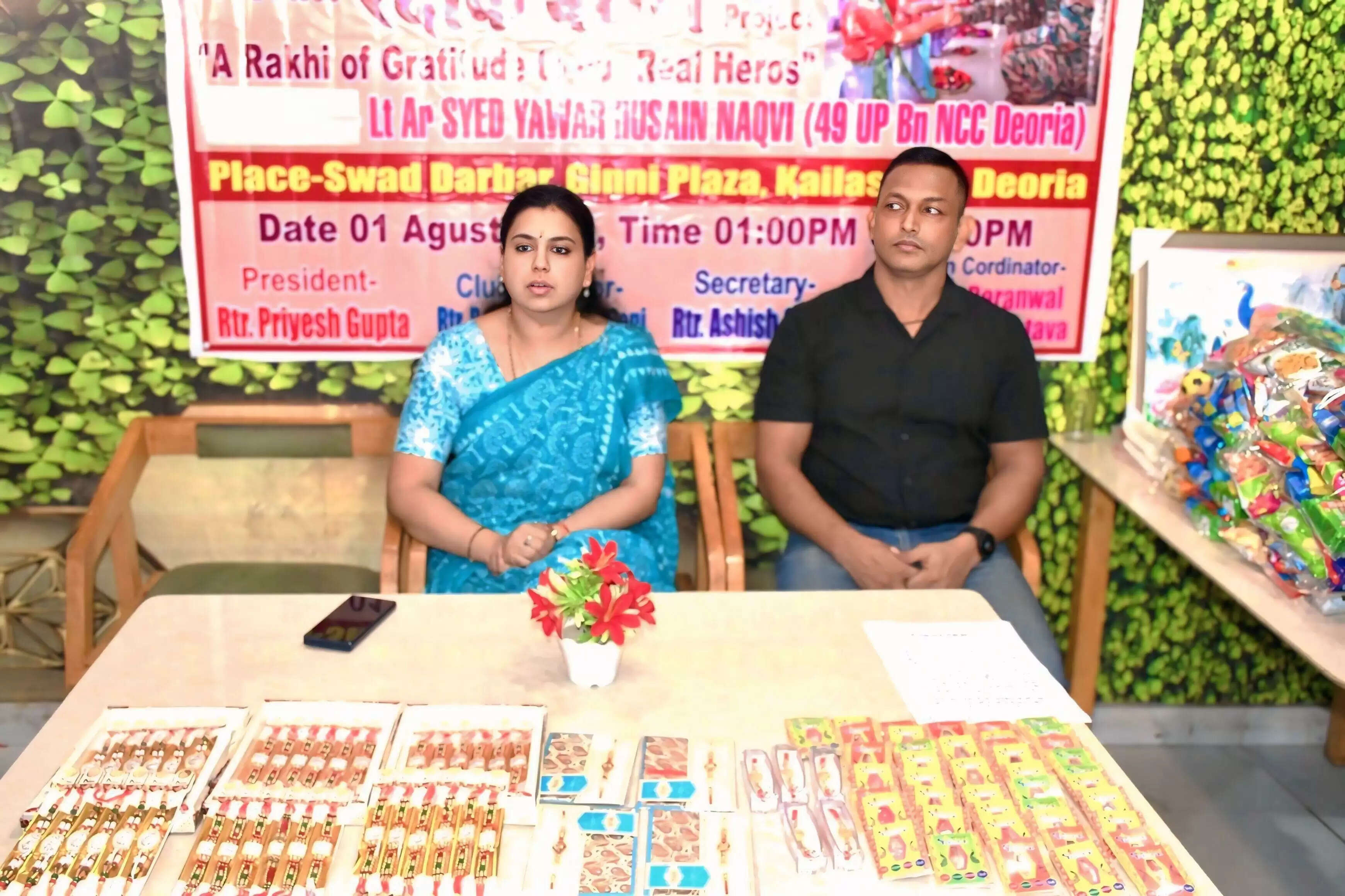 देवरिया, 1 अगस्त (हि.स.)। रक्षाबंधन के पावन पर्व से पूर्व देवरिया की बहनों ने सरहद पर तैनात देश के वीर जवानों के लिए प्रेम और सम्मान का अनूठा संदेश भेजा है। शुक्रवार को स्वाद दरबार, गिन्नी प्लाज़ा, कैलाशपुरी में रोटरैक्ट क्लब देवरिया द्वारा आयोजित “रक्षक बंधन – A Rakhi of Gratitude to our Real Heroes” कार्यक्रम में जिलाधिकारी श्रीमती दिव्या मित्तल ने प्रतिभाग किया।