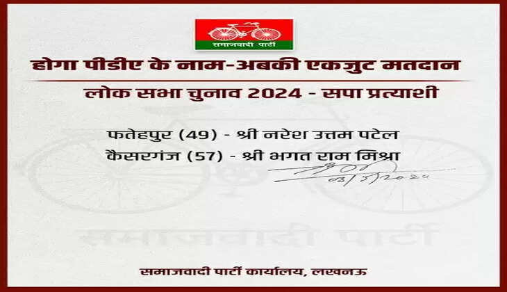 सपा ने फतेहपुर से नरेश उत्तम पटेल और कैसरगंज से भगत राम मिश्रा को दिया टिकट