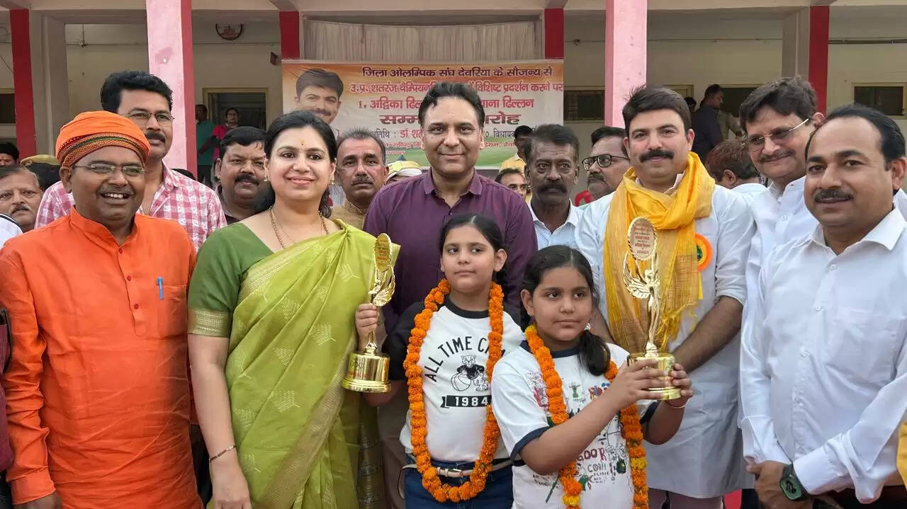 देवरिया, 2 मई (हि.स.)। सीतापुर में आयोजित उत्तर प्रदेश शतरंज चैंपियनशिप 2025 में जिले की दो होनहार बालिकाओं अव्याना ढिल्लो एवं अद्विका ढिल्लो ने उत्कृष्ट प्रदर्शन कर देवरिया का गौरव बढ़ाया। इस उपलब्धि के लिए दोनों बाल प्रतिभाओं को जिला ओलंपिक संघ के तत्वावधान में आयोजित सम्मान समारोह में सदर विधायक डॉ. शलभ मणि त्रिपाठी ने शुक्रवार काे सम्मानित किया।