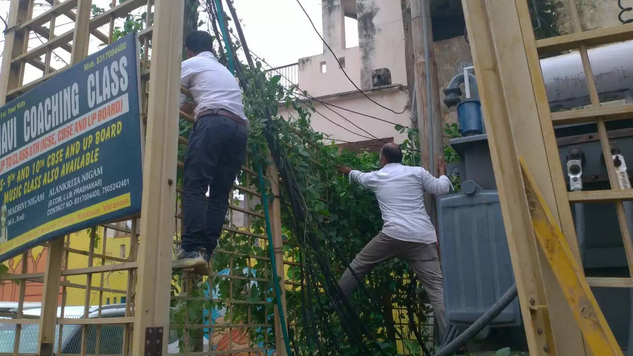 वाराणसी, 01 अगस्त (हि. स.)। प्रधानमंत्री नरेंद्र मोदी के आगमन से पहले वाराणसी के चौकाघाट और वरुणा पार जोन के मुख्य मार्गों पर विद्युत कर्मचारियों ने उपकेंद्र, ट्रांसफार्मर, बिजली के खंभों पर लटकती लताओं, घासों व पेड़ों की कटाई एवं साफ़ सफाई की।