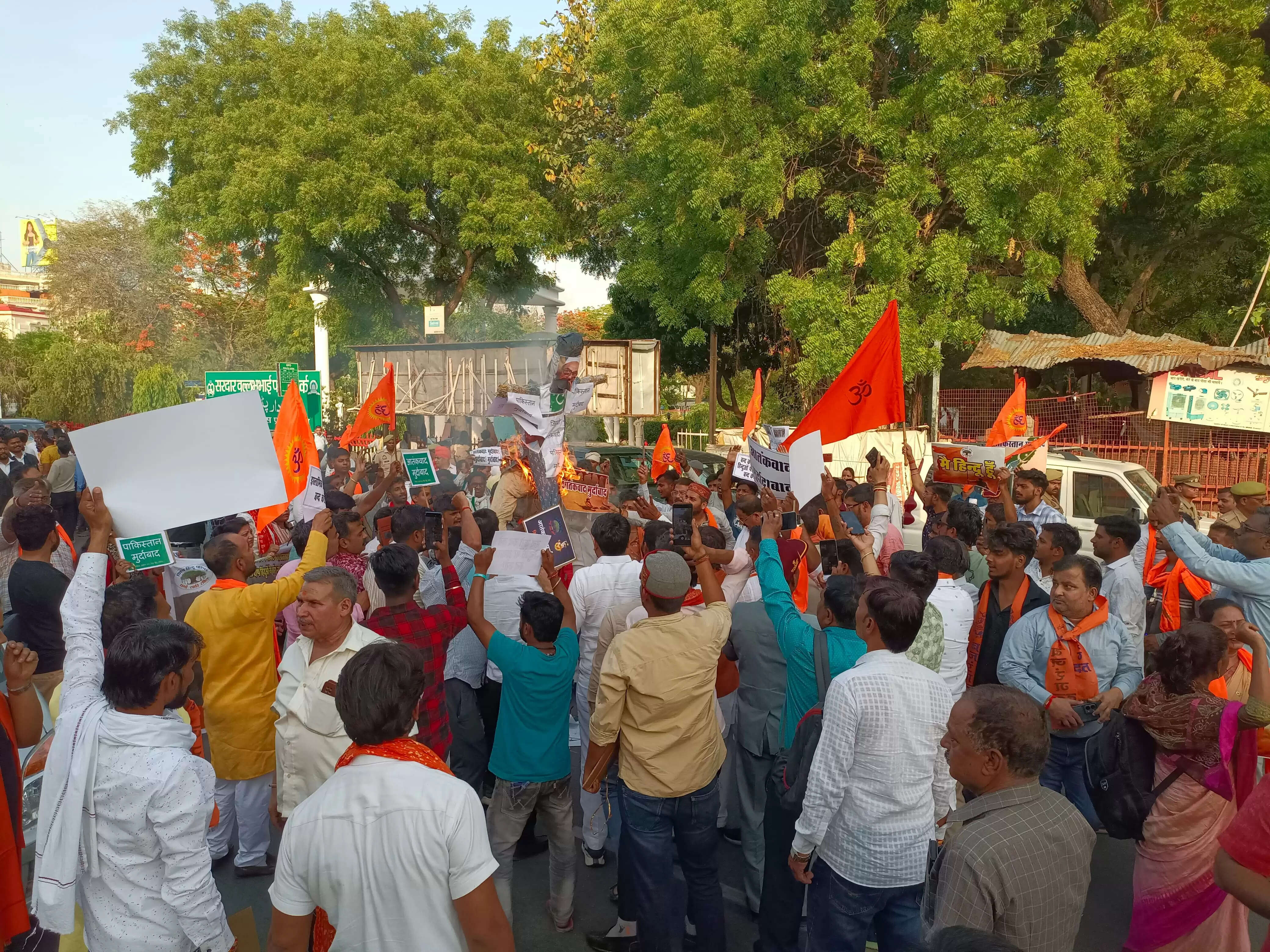 विहिप ने पहलगाम आतंकी हमले के विरोध में प्रदर्शन कर पाकिस्तान का पुतला फूंका