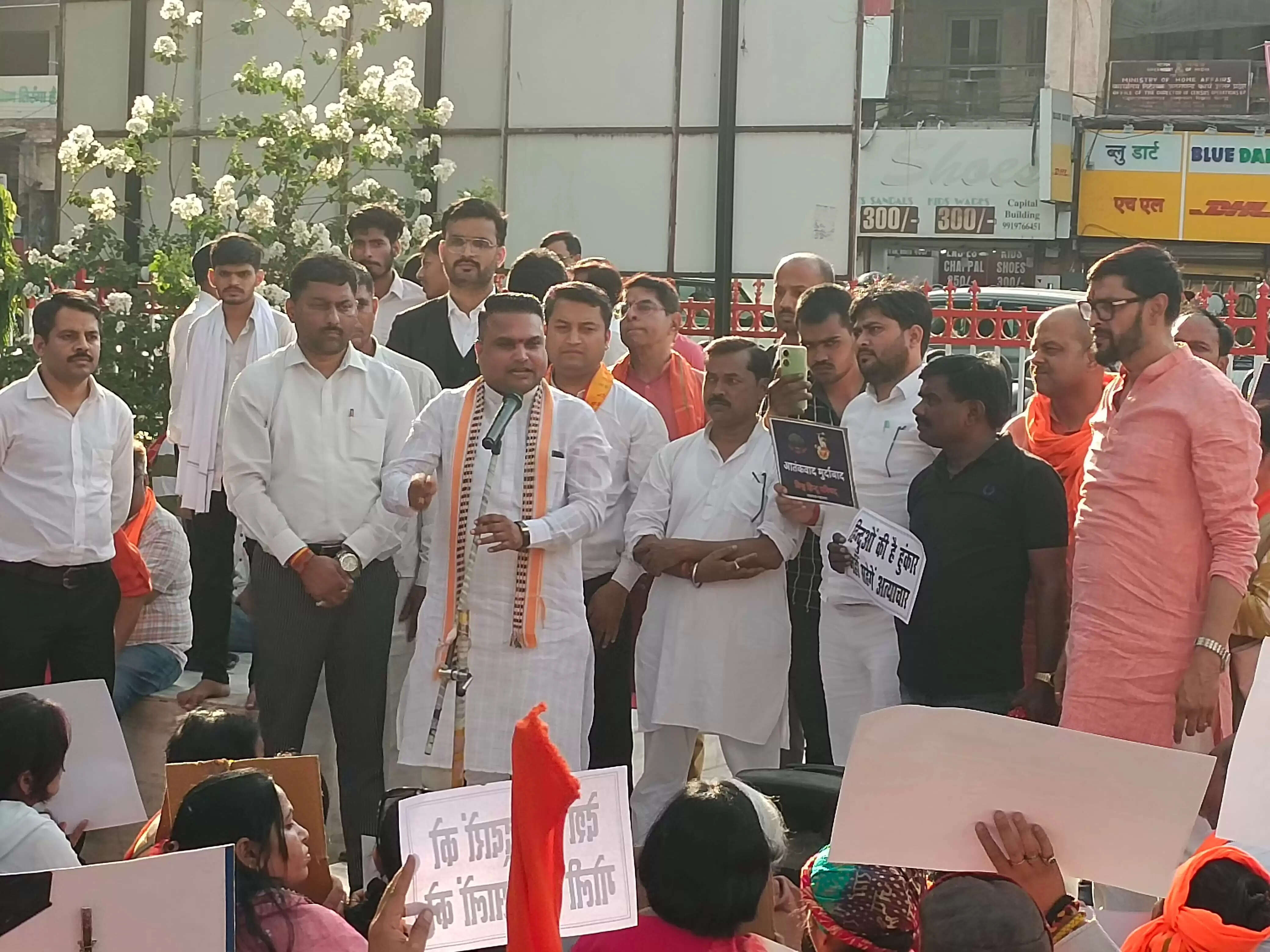 प्रदर्शन के दौरान विहिप, बजरंग दल, दुर्गा वाहिनी व मातृशक्ति की बहनें एवं एकत्र लोगों ने पाकिस्तान मुर्दाबाद, इस्लामी जिहाद मुर्दाबाद, आतंकवाद मुर्दाबाद लिखी तख्तियां हाथ में लेकर नारेबाजी की। कार्यकर्ताओं ने हमले में मारे गए हिंदुओं को श्रद्धांजलि अर्पित की गई।
