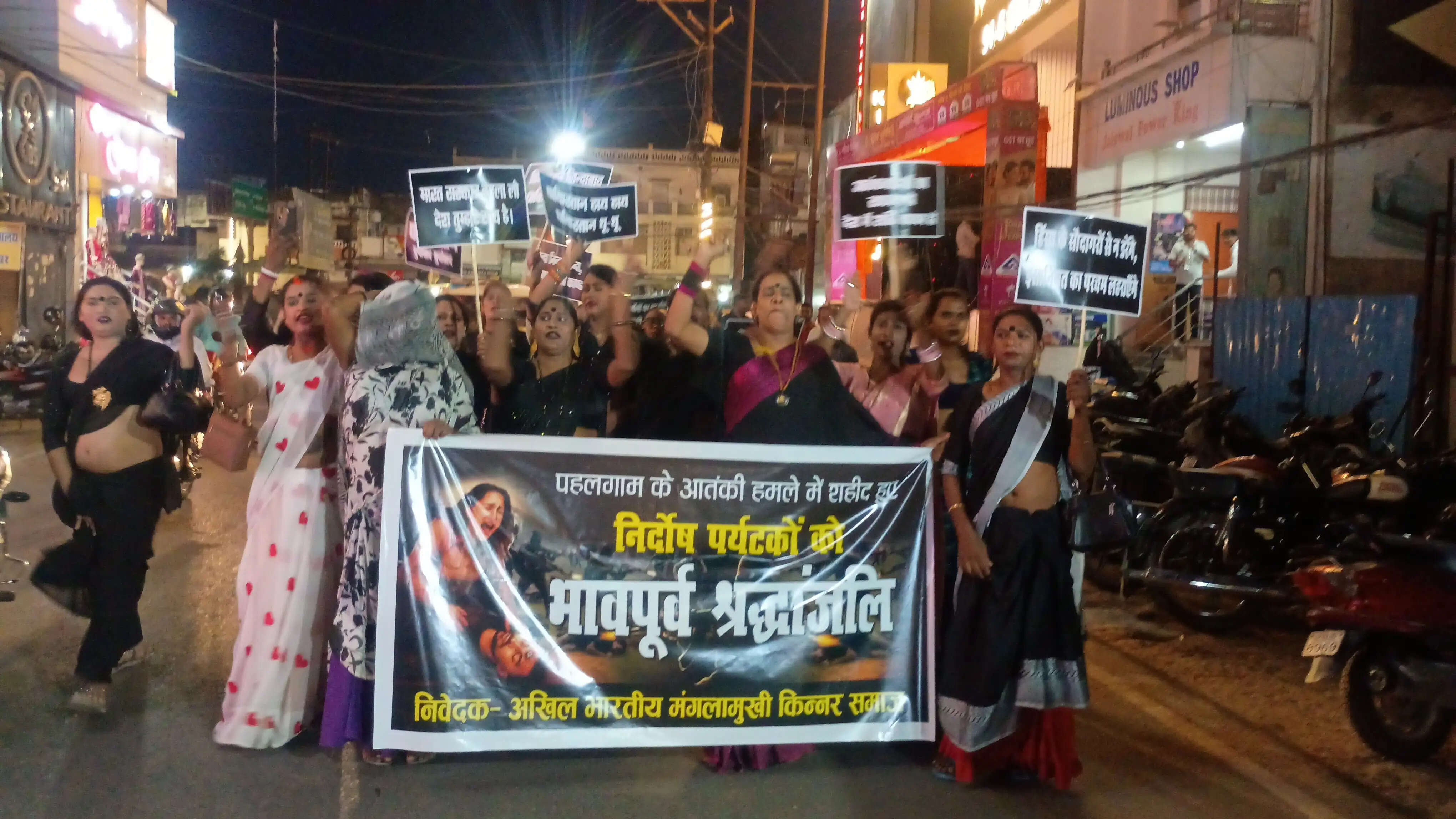 इस मामले में हिन्दुस्थान समाचार प्रतिनिधि से बात करते हुए कैंडल मार्च का नेतृत्व कर रही बिट्टू किन्नर ने बताया कि कश्मीर के पहलगाम में जो हमारे निर्दोष भाइयों को मारा गया है उसी को लेकर उनकी आत्मा की शांति को लेकर श्रद्धांजलि दिया और कैंडल मार्च निकाला है । हम सरकार से मांग करते हैं कि जो हमारे भाइयों के साथ घटना हुई है जो हमारी बहने विधवा हुई हैं माता की गोद सूनी हुई है उनको इंसाफ नहीं मिलता है तो अभी हमने यह ट्रेलर दिखाया है इसके बाद आगे हम और बड़ी आंदोलन करेंगे। हमने मन में यह ठाना है मोदी सरकार से मांग करते हैं कि आतंकवादियों के खिलाफ कड़ी से कड़ी कार्रवाई की जाए। मोदी जी से मांग करते हैं कि पाकिस्तान के एक एक आतंकवादियों को खत्म करें और यही नहीं पूरे देश से आतंकवाद खत्म करें।