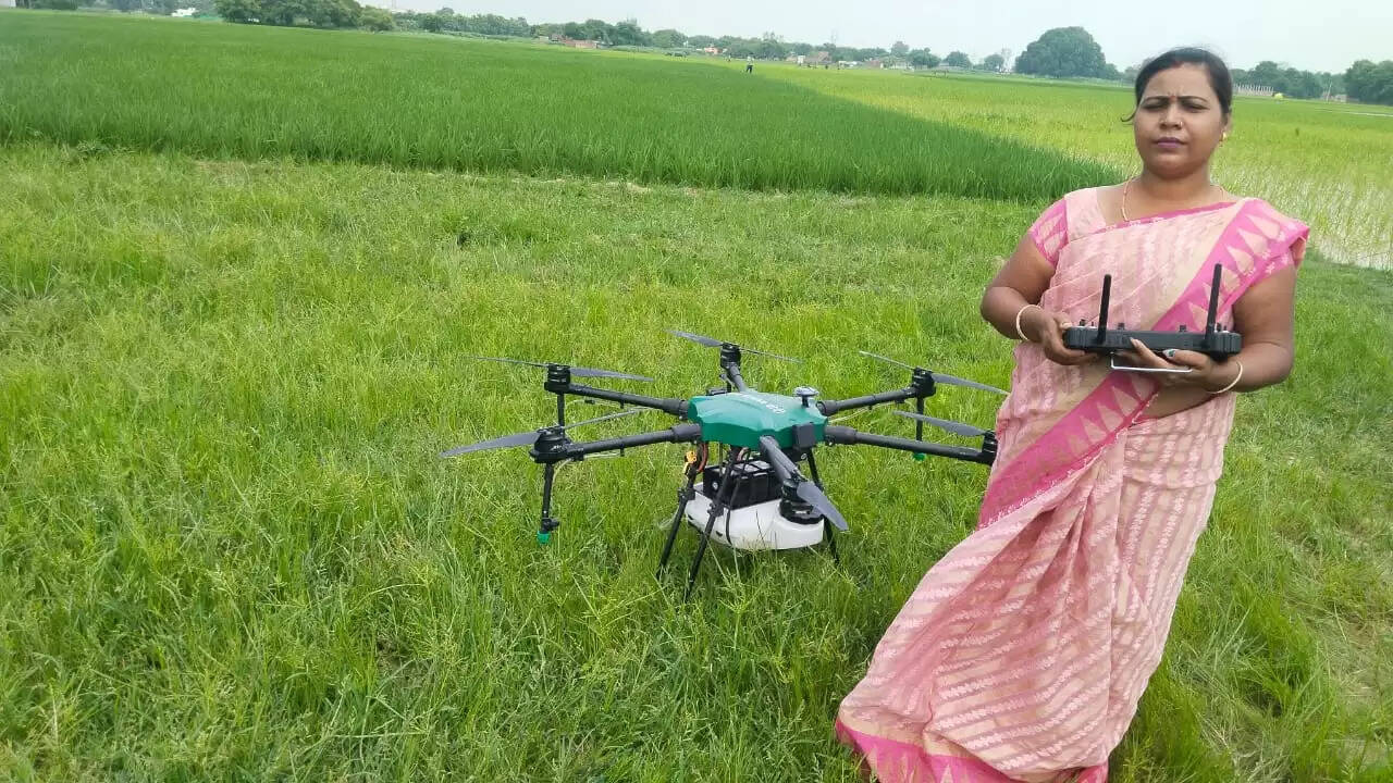 —खेतों में उर्वरक, कीटनाशक आदि का छिड़काव कर रहीं ड्रोन दीदी, 10 महीने में लाखों कमाए