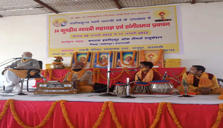 वाराणसी। गायत्री तीर्थ शांतिकुंज हरिद्वार के स्वर्ण जयंती वर्ष पर यज्ञ एवं सद्ग्रन्थों के महत्व से परिचय कराने के उद्देश्य से बनारस इंस्टीट्यूट ऑफ टीचर्स एजुकेशन कालेज, बाबतपुर वाराणसी में युग सृजेता गायत्री शक्तिपीठ,दानुपुर के संयोजन में 24 कुण्डीय गायत्री महायज्ञ व संगीतमय प्रवचन कोरोना संक्रमण के रोकथाम के लिए दिये गये निर्देशों के अनुक्रम में तीसरे दिन ही कार्यक्रम का समापन कर दिया गया।