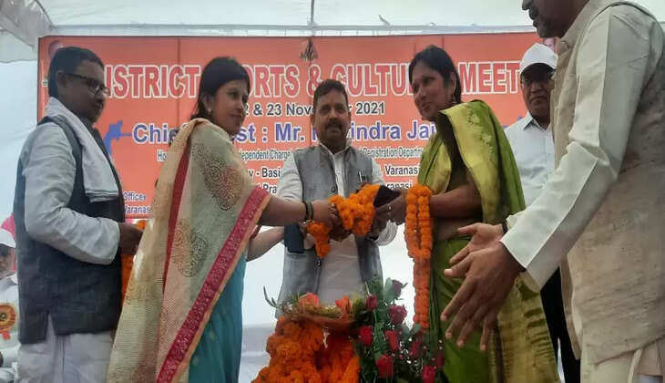 वाराणसी। उदय प्रताप कॉलेज के मैदान में सोमवार को दो दिवसीय बाल क्रीड़ा व शैक्षिक समारोह का उद्घाटन राज्यमंत्री रविंद्र जयसवाल ने किया। जिले के 8 ब्लॉकों से बच्चों ने इसमें हिस्सा लिया। जिसमें आठ बार की गोल्ड मेडल चैंपियन चोलापुर की पीटी टीम ने मार्च पास्ट कर सभी अतिथियों का मन मोह लिया। वहीं अन्य प्रतियोगिता में बालिका वर्ग 400 मीटर कुश्ती योग व नृत्य प्रतियोगिता का पहले दिन आयोजन किया गया।