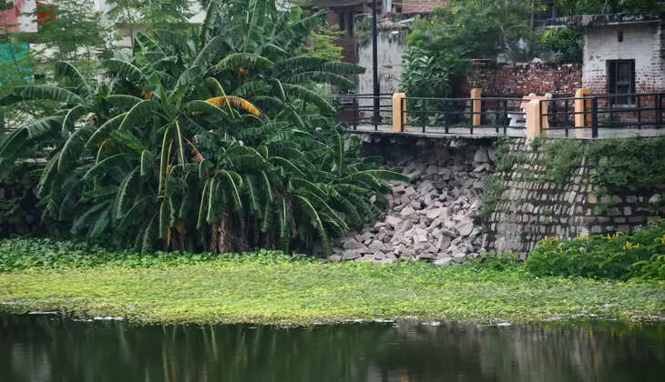 पुष्कर तालाब के पाथवे की सपोर्टिंग दीवार गिरी, स्थानीय लोगों ने लगाया मानक के विपरीत काम होने का आरोप